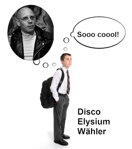 Heute morgen dachte ich mir: Schauen wir doch mal, was dieses Disco Elysium, das es so weit bei dieser Wahl gebracht hat, ĂŒberhaupt ist. Also habe ich ein Letâs Play rausgesucht und mich (selbstverstĂ€ndlich völlig representativ) durchgeklickt. Text, noch mehr Text, Text mit Dialogoptionen, Text, Text, Figur lĂ€uft durch die Spielwelt, Text, Text mit Dialogoptionen, Text, Text, âGameplayâ (Gegenstand wird vom Inventar auf Spielfigur gezogen), Text⊠Dieses Produkt sollte also in erster NĂ€herung wohl besser nicht als Rollenspiel, sondern wahlweise als RollentextwĂŒste oder bebildertes interaktives Rollenbuch bezeichnet werden. Nichts gegen Liebhaber von viel Text - ich selbst bin da nicht grundsĂ€tzlich abgeneigt - , aber man muss schon das Kind beim Namen nennen und bei dieser Wahl wird immer noch ein Spiel gesucht.
