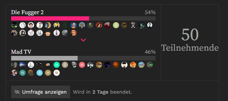 Ich befürchte, dass @christianschiffer gleich mit „seiner“ Richtlinienkompetenz ums Eck kommt und somit das ganze Wasted-Team für Mad TV stimmen muss.