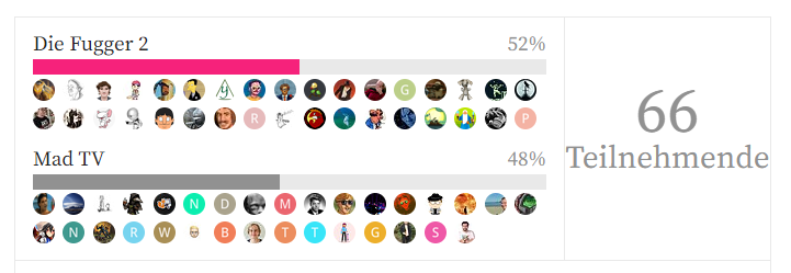 Na gut, verständlich. Einfachste Lösung wäre übrigens wohl, wenn du deinen Track „Lauflieder“ nehmen würdest, den wir ja alle im hervorragenden Debüt von „Mindestens 10 Zeichen“ bestaunen konnten, und das Wort „Laufen“ darin einfach zu Ehren der Fugger in „Kaufen“ umtaufst, oder?