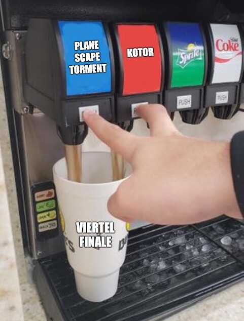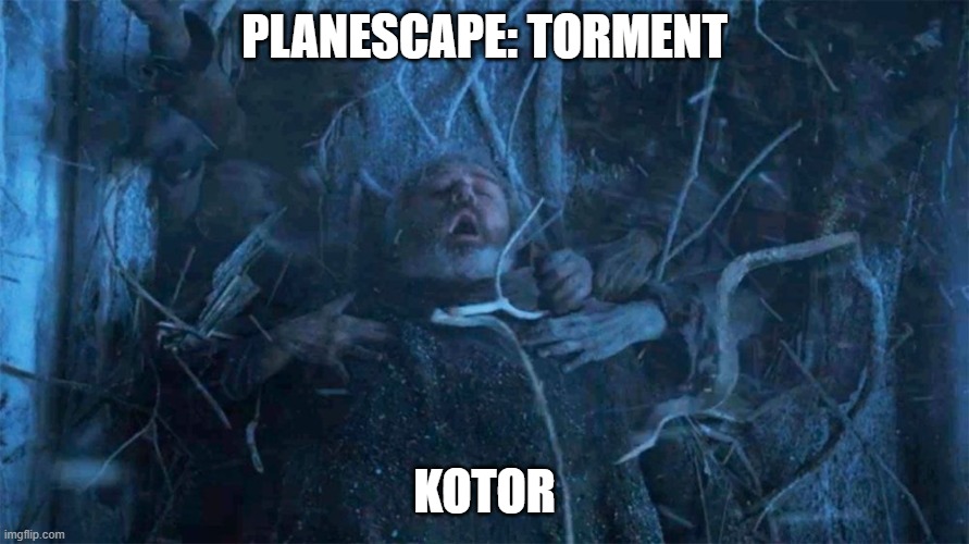 Gegenvorschlag: Planscape Torment und KOTOR treten ab sofort einfach gemeinsam gegen den Rest an und teilen sich am Ende die Trophäe. Das beste RPG wäre ohnehin ein entsprechendes Cross-Over und ich sehe mehre Charaktere aus KOTOR im Bordell der intellektuellen Gelüste abhängen.