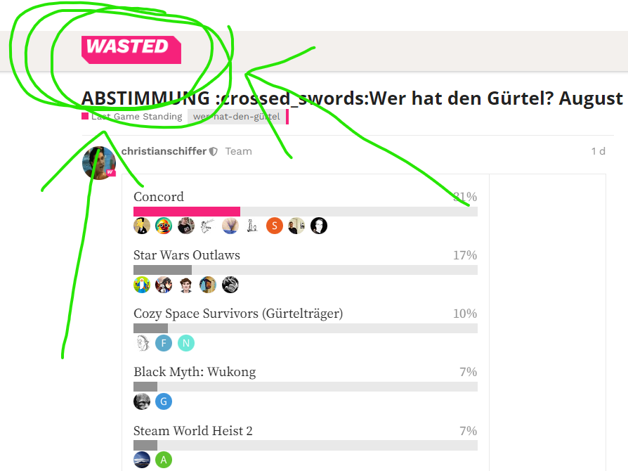 Können wir uns alle darauf einigen, dass Concord den Gürtel gewinnen sollte, damit es nicht all zu peinlich für Sony wird? Alleine schon dafür, dass die Spieler aktuell wie Lemminge in den Abgrund springen um zu Leveln ist doch eigentlich ein paar Stimmen wert: