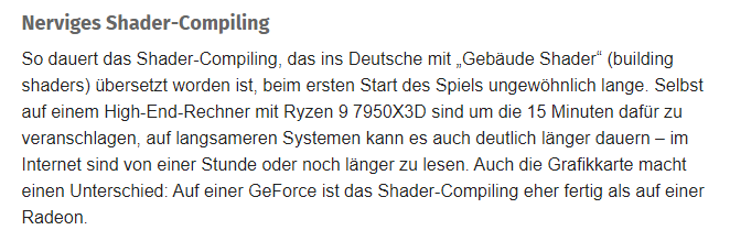Wir kommen also mit ner mehrstündigen Downloadzeit klar, nicht aber mit 30 min Wartezeit? (Ja, die Übersetzung „building shaders“ - „Gebäude shader“ hat einen Sonderpreis verdient)