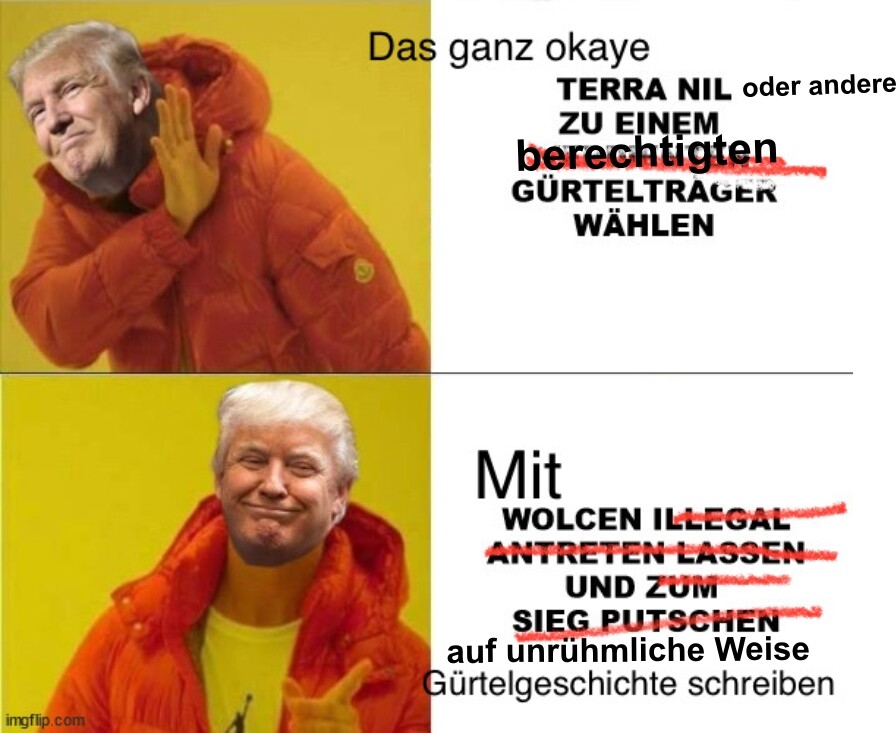 Und genau darum veranstalten wir das wie du es nennst „Kasperletheater“, um den Gürtel mit seinem eigenen strengen Regelwerk zu überrumpeln. Aber nun, dann halt nicht, bleibt wie’s ist.