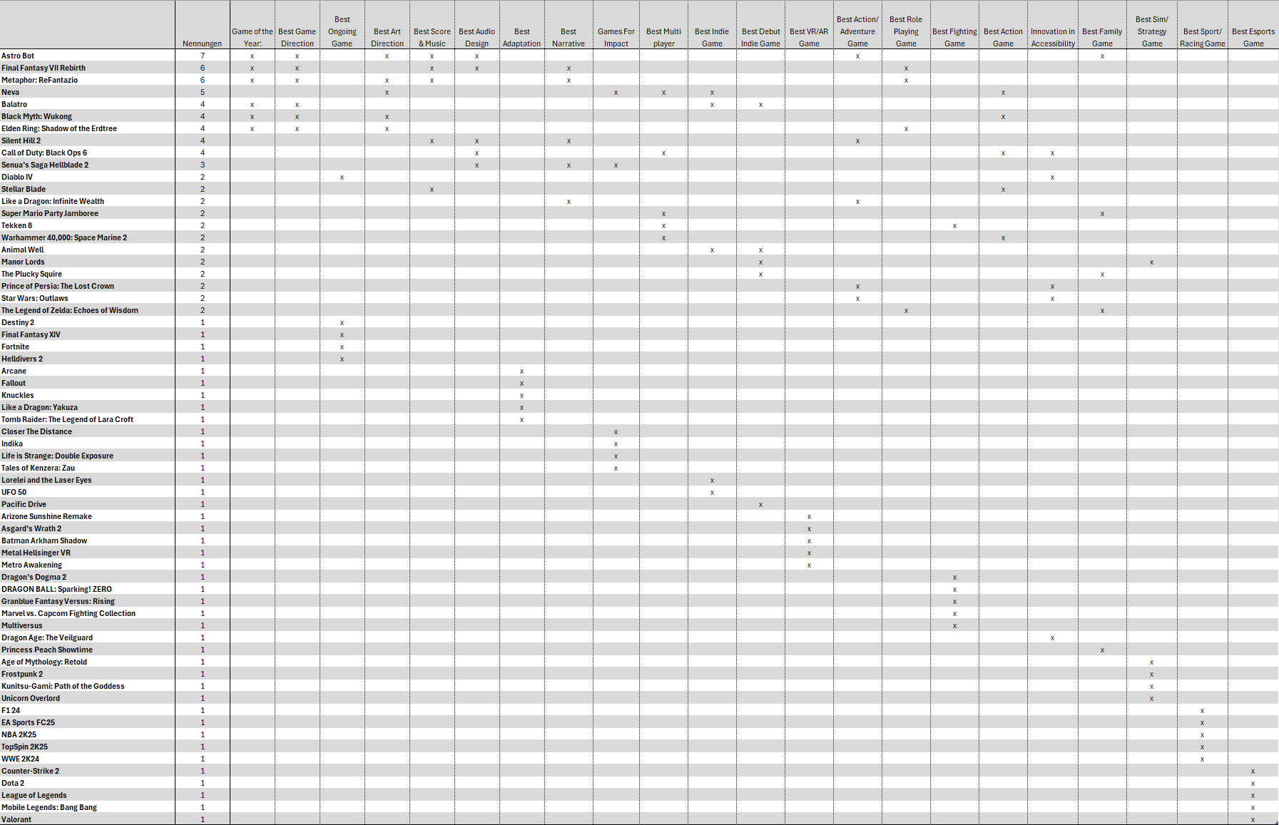 ich verstehe die liste ja gar nicht. warum sindLoL, Valorant 2, Dota 2 usw. alle darin, obwohl die 2024 gar nicht released or ein entsprechendes Update erhalten haben? Und was ist bitte Fallout, um die Spieleserie kann es sich ja nicht handeln?
