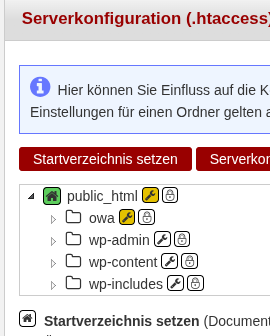 Bei Hetzner ist der Maulschlüssel beim owa-Verzeichnis (wo die install.php liegt) im GUI auch auffällig gelb …