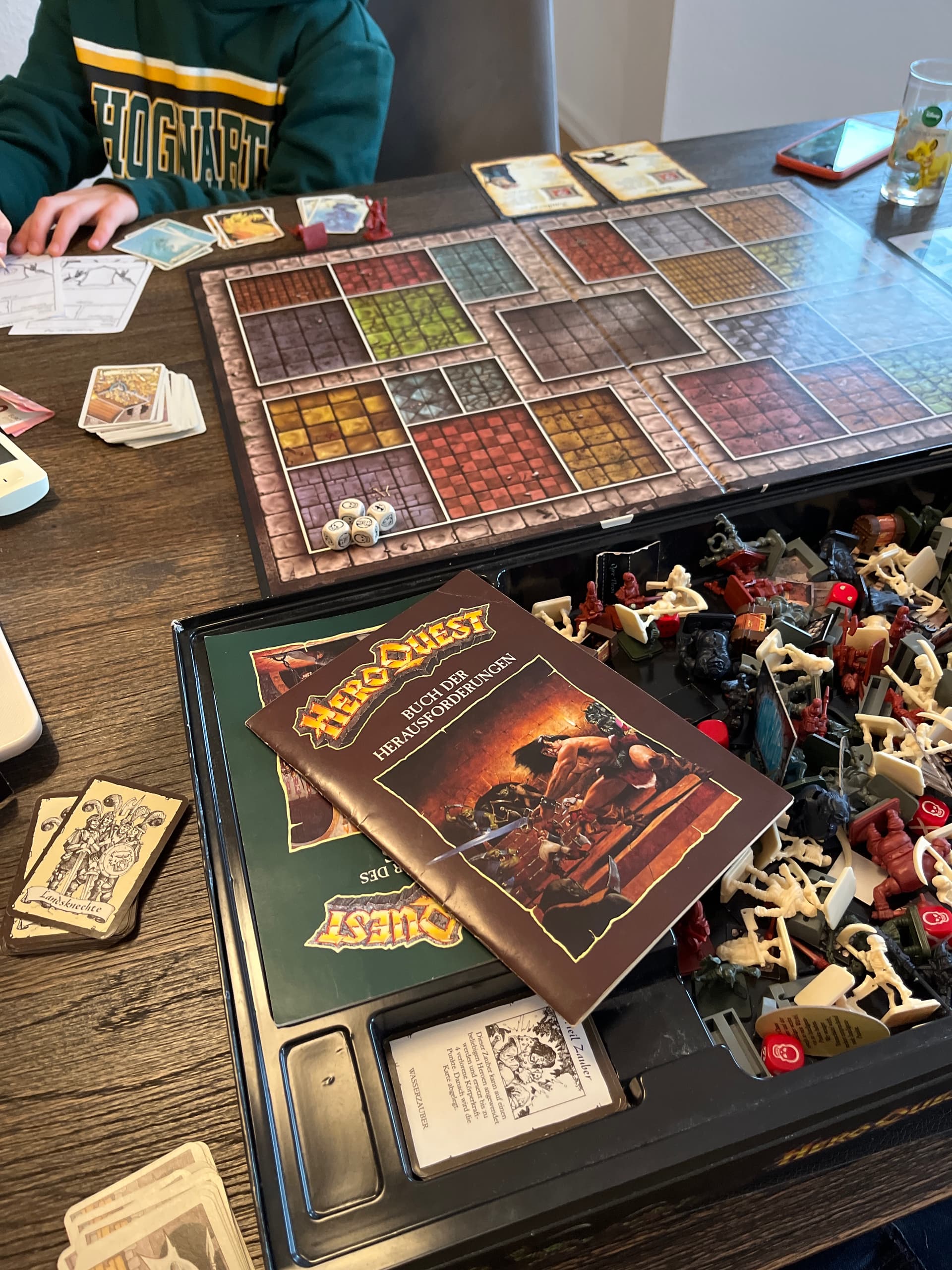 Ich spiele jetzt mit meinem Sohn eine Runde Hero Quest. Das ist zwar nicht digital aber passt ja doch halbwegs ![]()