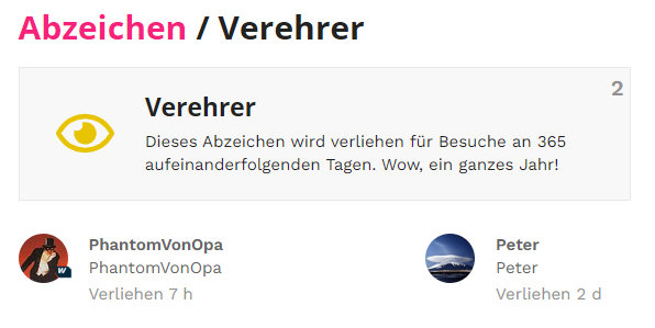 Morgen vor einem Jahr bin ich beigetreten. Ich muss feststellen, dass auch ich mir in der Zeit zwei unentschuldigte Fehltage geleistet habe und daher – trotz meiner tiefsten Verehrung – das Abzeichen nicht abstauben kann.