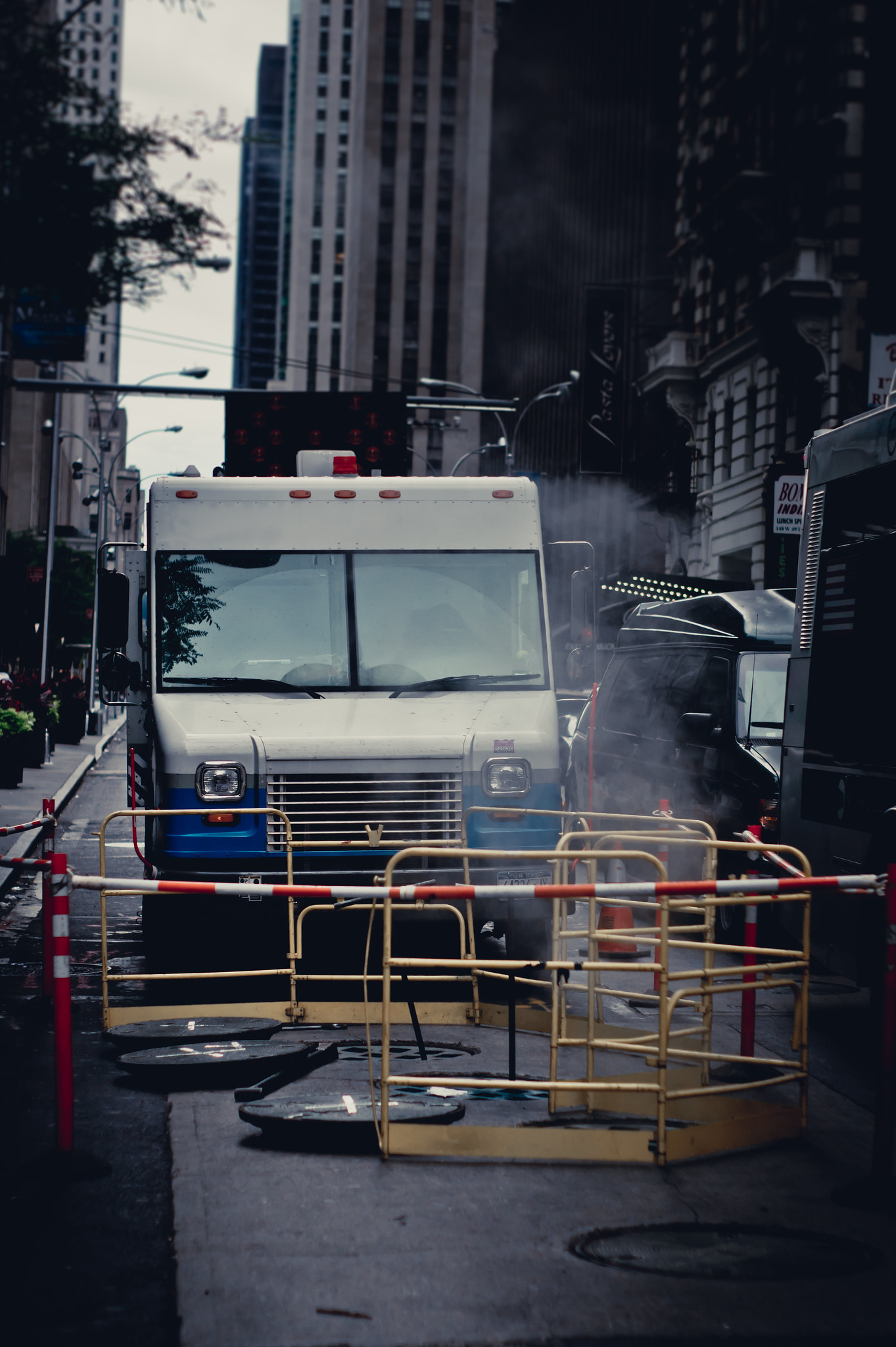 Ja, das siehst du in Manhattan wirklich sehr häufig, wenn es etwas kühler ist oder es regnet. Ist das alte Dampfheizungssystem, dessen Rohre unter den Straßen verlaufen.