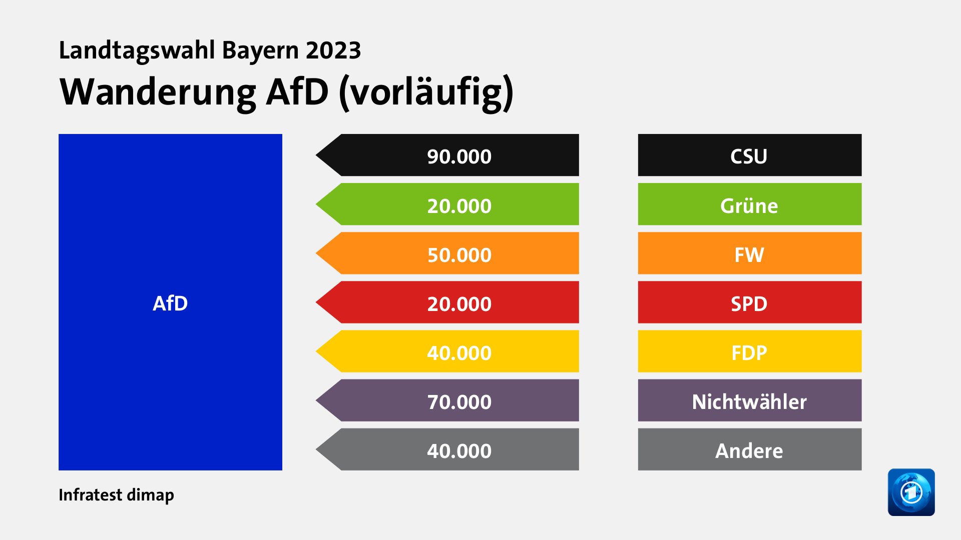 Richtig ist, dass Menschen aus dem linken Lager zur AfD gewechselt sind, aber entscheident sind in Summe (wahrscheinlich) eher NichtwählerInnen und die WählerInnen, die vorher eh schon mitte-rechts bis rechtskonservativ gewählt haben Allein 90.000 aus der CSU und 50.000 von den FW. Hier die vorläufige Grafik zur Wähler*innenwanderung zur AfD: