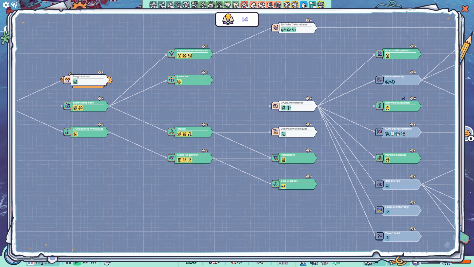 Nicht ganz so komplex wie in Civ, aber Forschen kann und sollte man trotzdem in Flotsam