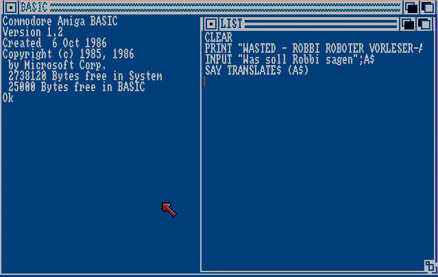 Die „Say“-Funktion im Amiga-Basic war zusammen mit der Jesus bleibet meine Freude-Basic-Sounddemo, das Geilste überhaupt. Als ich Weihnachten 1988 zum ersten mal vor dem Amiga saß, dachte ich: „Willkommen in der Zukunft, besser geht es nicht mehr“.