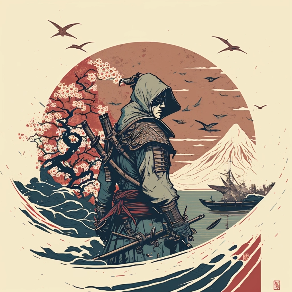 Assassins creed in style of Hokusai