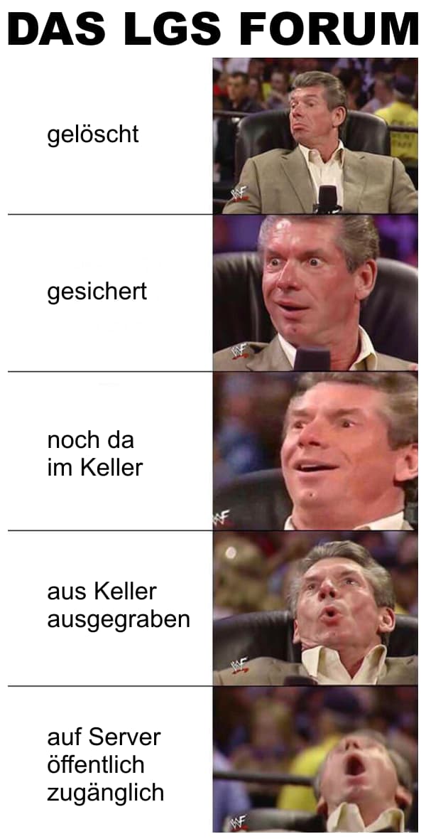 Schön finde ich auch, dass ihr ein Meme von @anon76348628 ausgegraben habt. Der war zu LGS-Zeiten nee große Stütze der Community und hat neben duften Memes auch eine Zeitlang die LGS-Wochenshow produziert.
