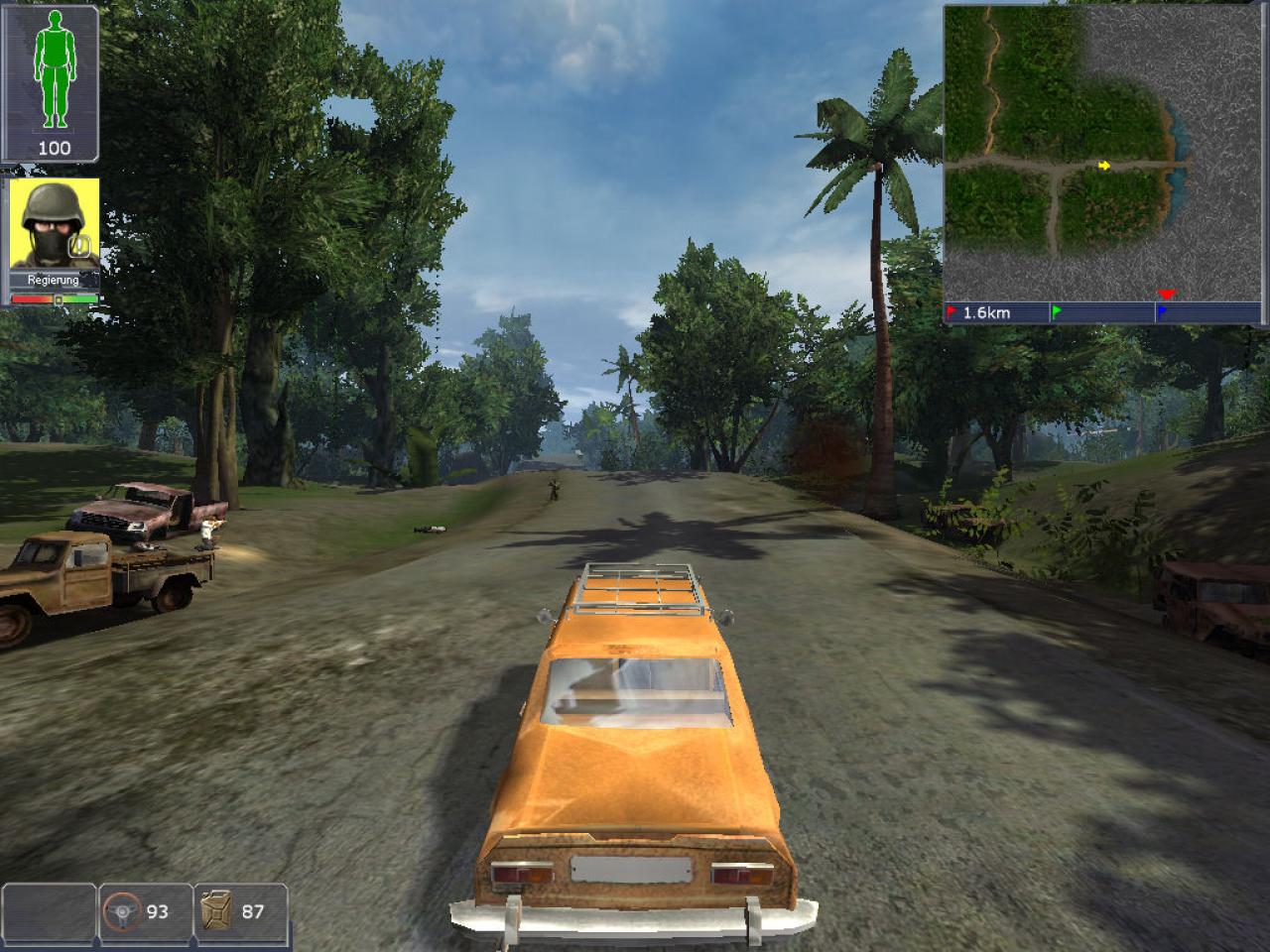 Für mich hat sich schnell herausgestellt, dass man die Fraktionen am besten in einer bestimmten Reihenfolge nacheinander abarbeiten sollte, um es sich nicht zu früh mit dem Militär oder den Rebellen zu verscherzen – die können einem das Leben wirklich schwer machen, da sie weit verbreitet sind und jeweils eine der Städte unter ihrer Kontrolle haben. Da fährt man dann nichtsahnend durch die Gegend und plötzlich fallen vor und hinter dem Auto Bäume um und aus dem Gebüsch nebenan fallen Schüsse, die anderen Fraktionen machen sowas nicht und man kann ihnen gut aus dem Weg gehen.