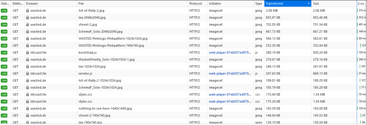 Mit entsprechender Image Conversion duerften die Teaserbilder der jeweiligen Posts maximal im 2stelligen kb Bereich liegen (avif / webp + Dimensions berechnen, die auch dargestellt werden).