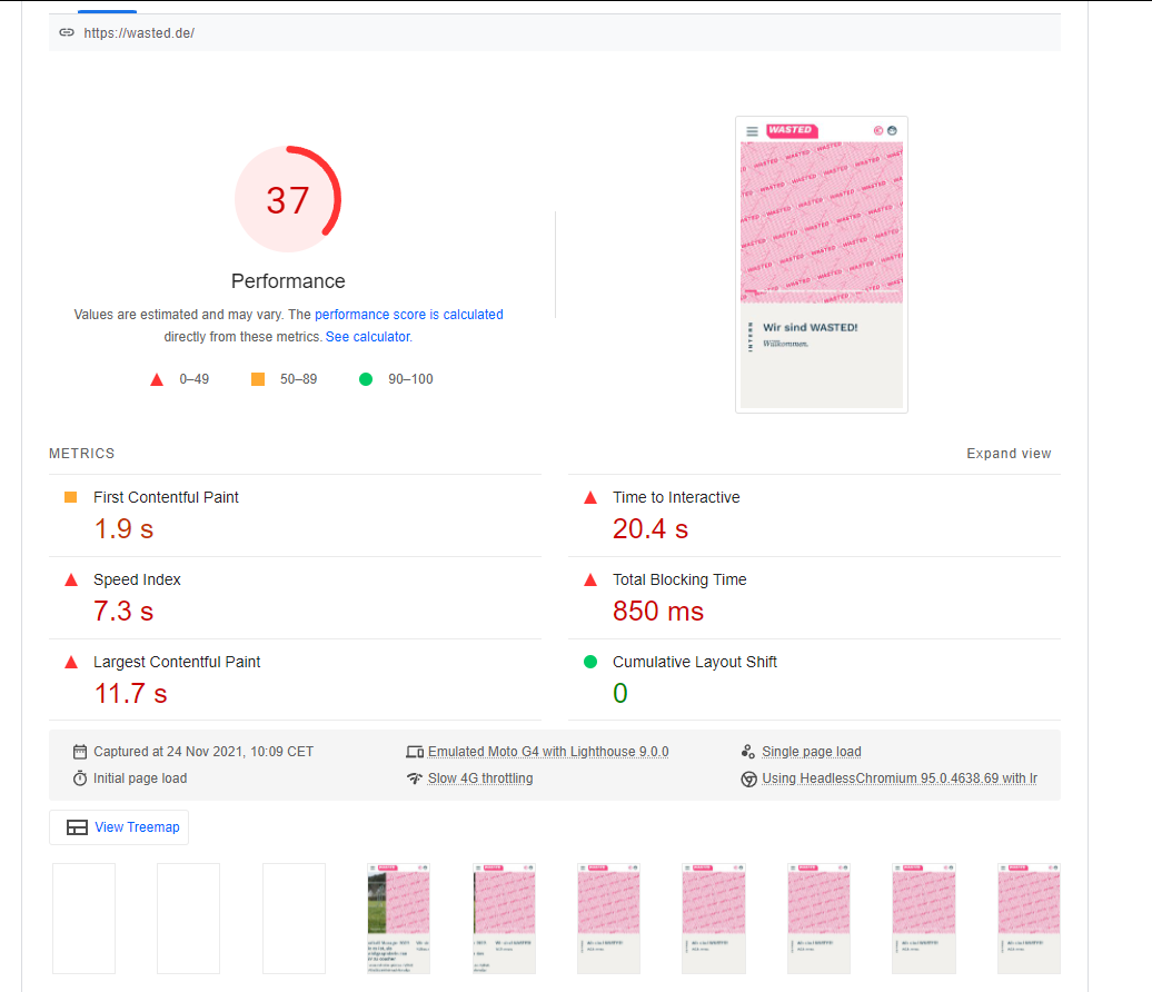 Euer Lighthouse Score ist leider auch ziemlich mies (nicht gut, wenn ihr zeitnah fuer die Suche nach ‚wasted‘ oben stehen wollt)