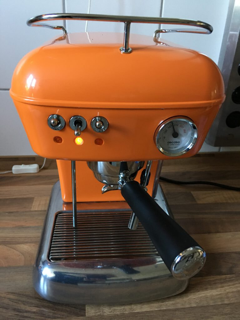 In Wien gibt steht eine orange Ascaso Dream (jetzt Dream One) eingepackt in einer Kiste bis ich wieder da bin. Kannst die solange haben Sieht auch stylisch aus.