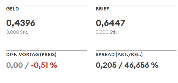 Aber kein Angebot, generell kein Volumen an der Boerse und ‚billigst‘ Order klingt wahrscheinlich.