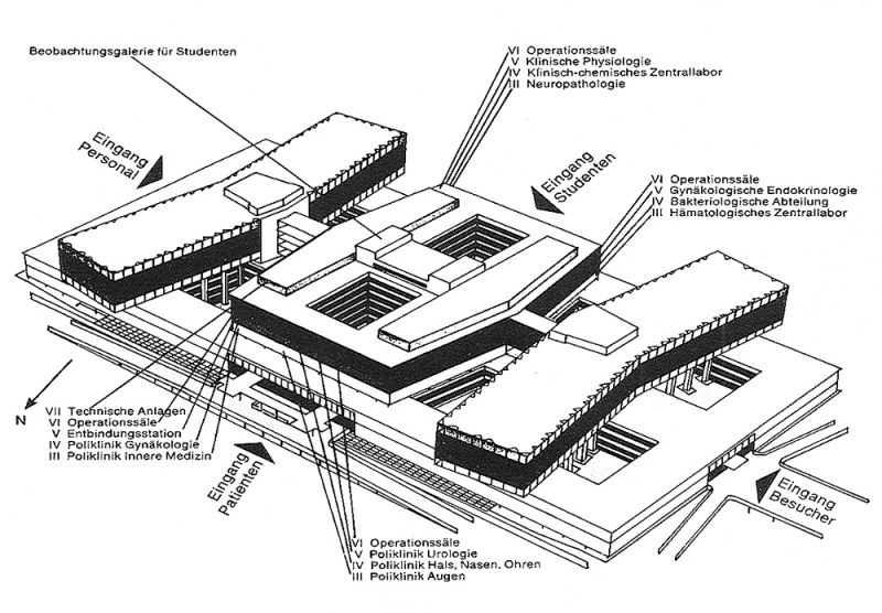 Das hier ist nicht etwa das Berghain, sondern der absolute Krankenhaus-Endgegner: die Charité Bejamin Franklin - ehem. Klinikum Steglitz. Nach der Teilung Berlins hatte der Westen nämlich kein Uniklinikum mehr und ein Neues musste mit Hilfe amerikanischer Gelder aus dem Boden gestampft werden.