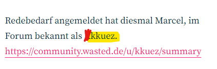 Was das Format angeht, auch da bin ich total bei dir, zusammen mit Top5 wirklich die Stärke von Wasted, Communitygebundenheit.