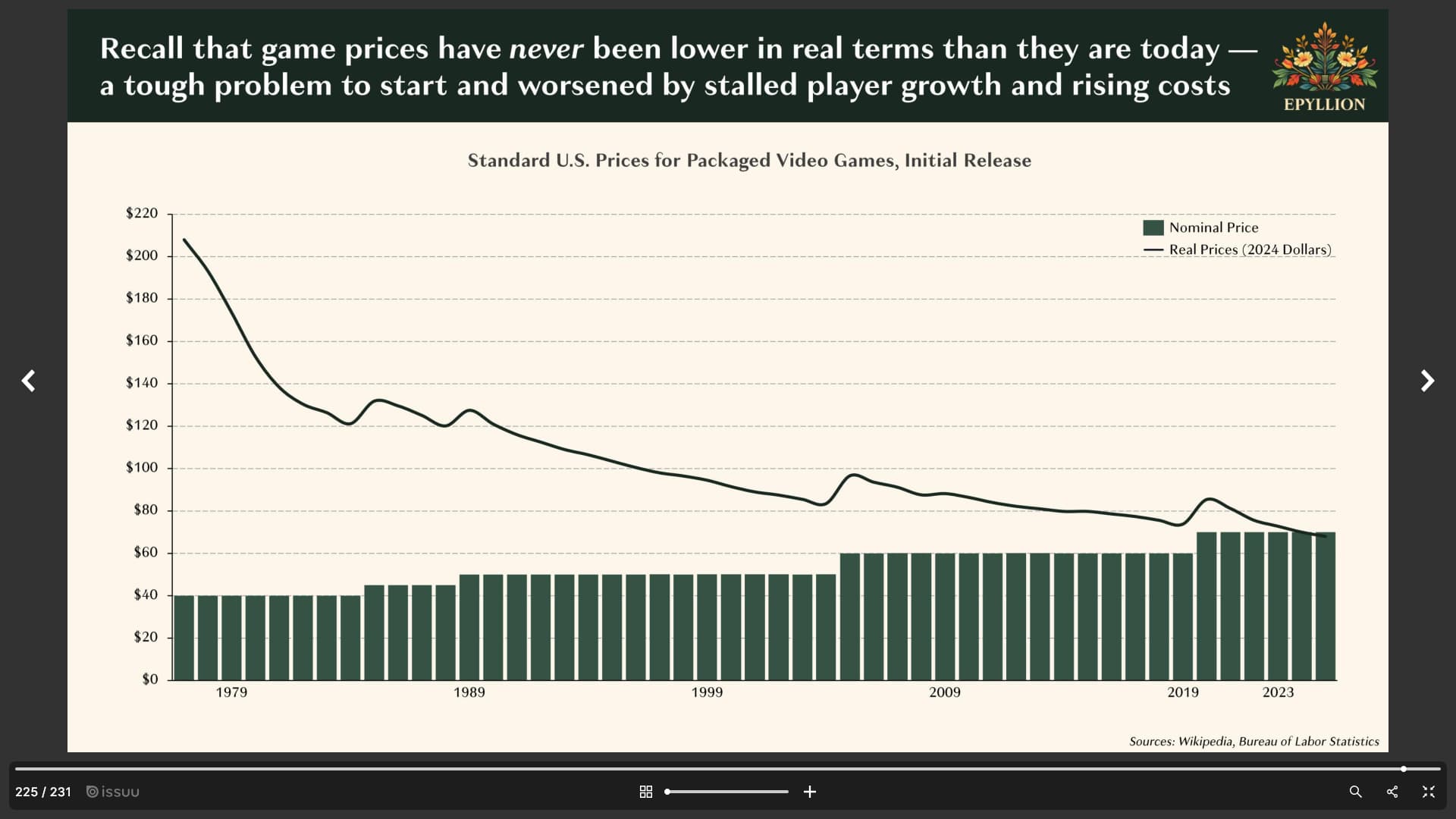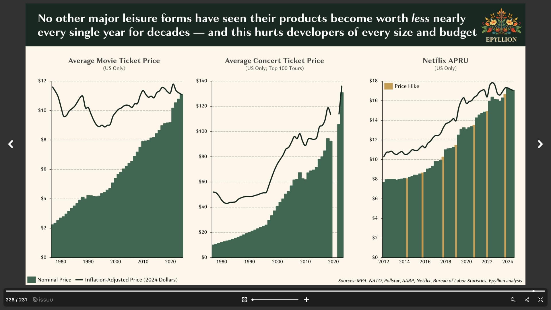 und dann reden wir hier immer noch von einem AAA-Titel. Das Risiko, dass ein AAA Floppt, ist die letzten Jahre massiv gestiegen, was auch sicher mit den Preisen zusammenhängt. Aber gleichzeitig gibt es eben andere Effekte die gestiegen sind (Reichweite, Verkaufszahlen…) bzw. gefallen sind (Marketing, Publishing, Produktion von Hardware…).