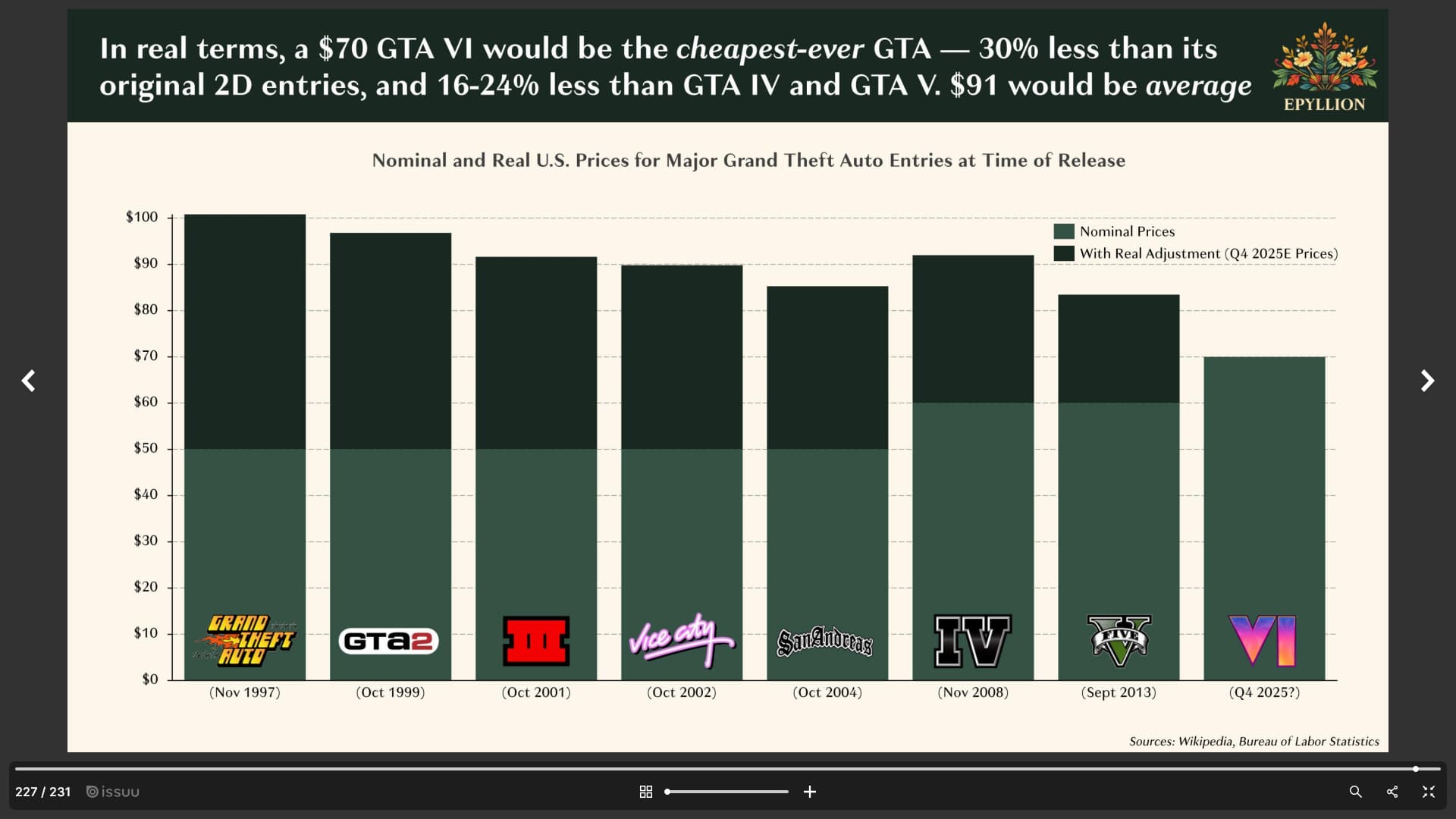 Du müsstest dir eigentlich ansehen wie teuer es wäre heutzutage ein GTA 1 zu machen und nicht wie teuer es ist ein viel größeres, „besseres“, längeres, schöneres Spiel zu machen.