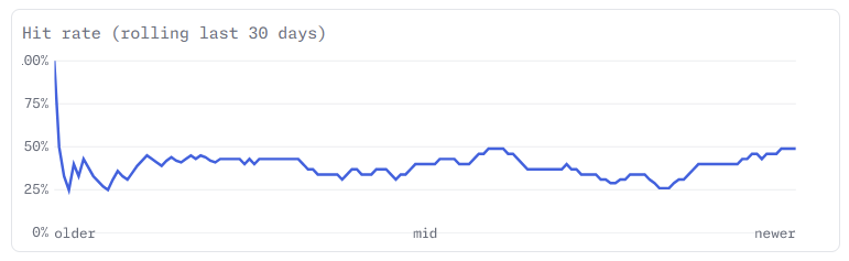 Bei mir läuft es momentan schon fast wieder zu gut, über die 50%-Linie hatte ich es bisher noch nie wirklich (längere Zeit) geschafft. ![]()
