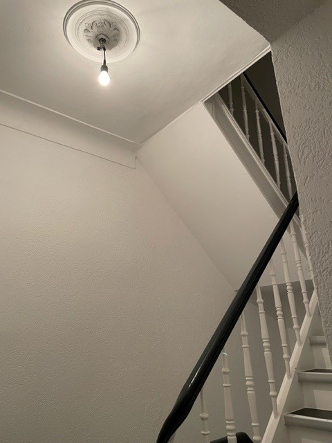 Die Vorstadt-Möbelhäuser haben bei Lampen nur die Auswahl zwischen „Billig und hässlich“ oder „Teuer und sehr hässlich“. Einzige Rettung (to end this on a positive note): man geht in einen kleinen Lampenladen des Vetrauens, bittet dort eine Person in die zukünftige Wohnung mitzukommen und danach Lampen vorzuschlagen. Dann nicht zögern, sondern kaufen. Auch wenn das Konto weint. Die Erfahrung sagt: überall wo man jetzt keine Lampen hinmacht, kommen auch keine mehr hin bis zum Auszug. Belegbild aus unserem Treppenhaus anbei. Aber wir wohnen hier auch erst 8 Jahre…
