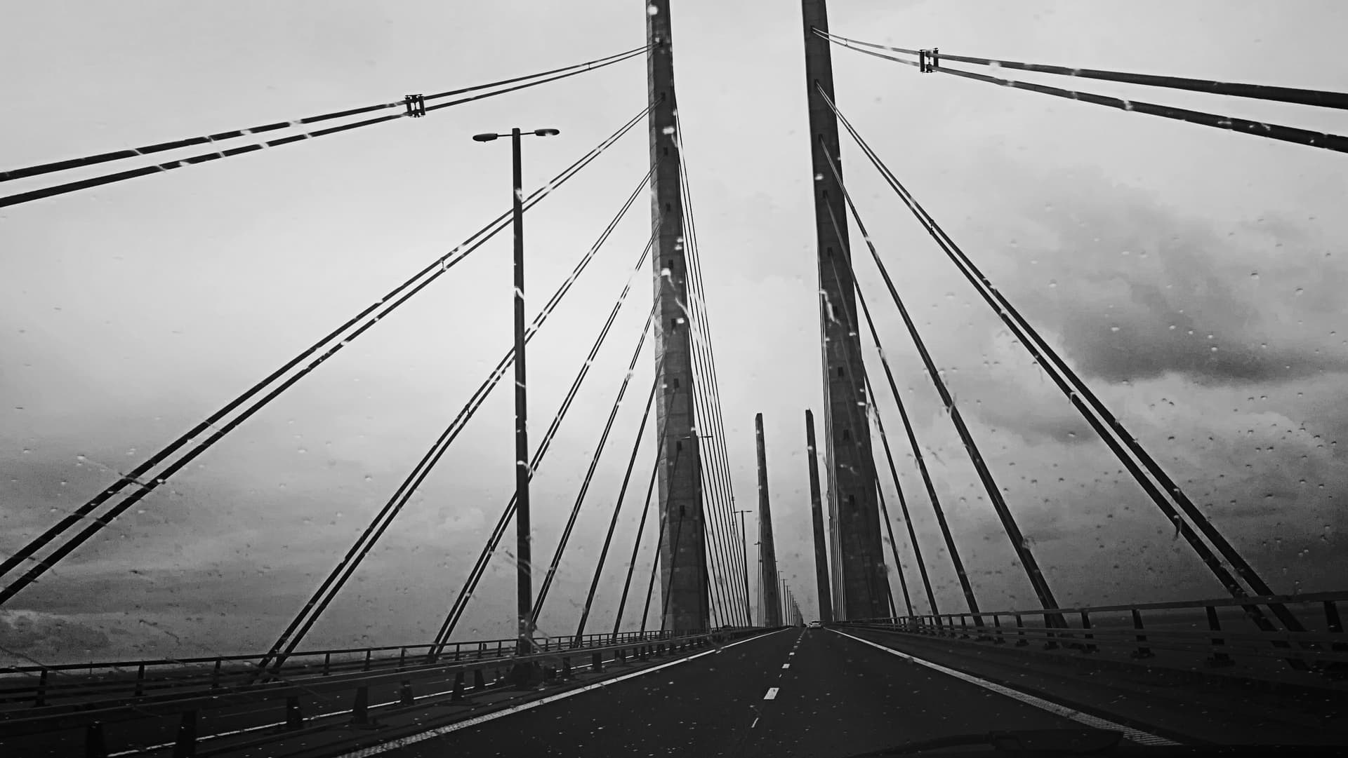die über den Øresund. War alles cool (Foto gemacht während alles cool war), bis ich ein großes Schiff DA UNTEN sah. Von da an - und entsprechend auf der Rückfahrt - bisschen schwitzige Hände am Lenkrad.
