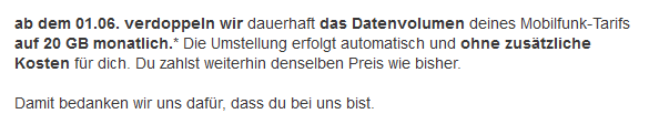 Die trauern hier wohl ihren UMTS-Milliarden hinterher und meinen deswegen immer noch abzocken zu müssen. Die Änderung mit mehr Volumen gibt es jetzt auch nur weil die Zero-Rating-Angebote zum Glück verboten wurden.