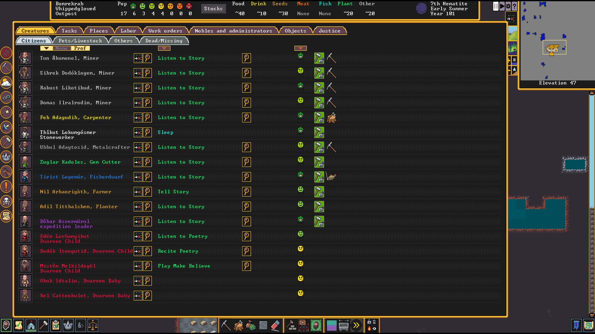 Hatte so schön gelernt, mich von Sekiro lehren zu lassen - vorgestern Abend noch Genishiro verprügelt - da kommt Dwarf Fortress daher, Mist.