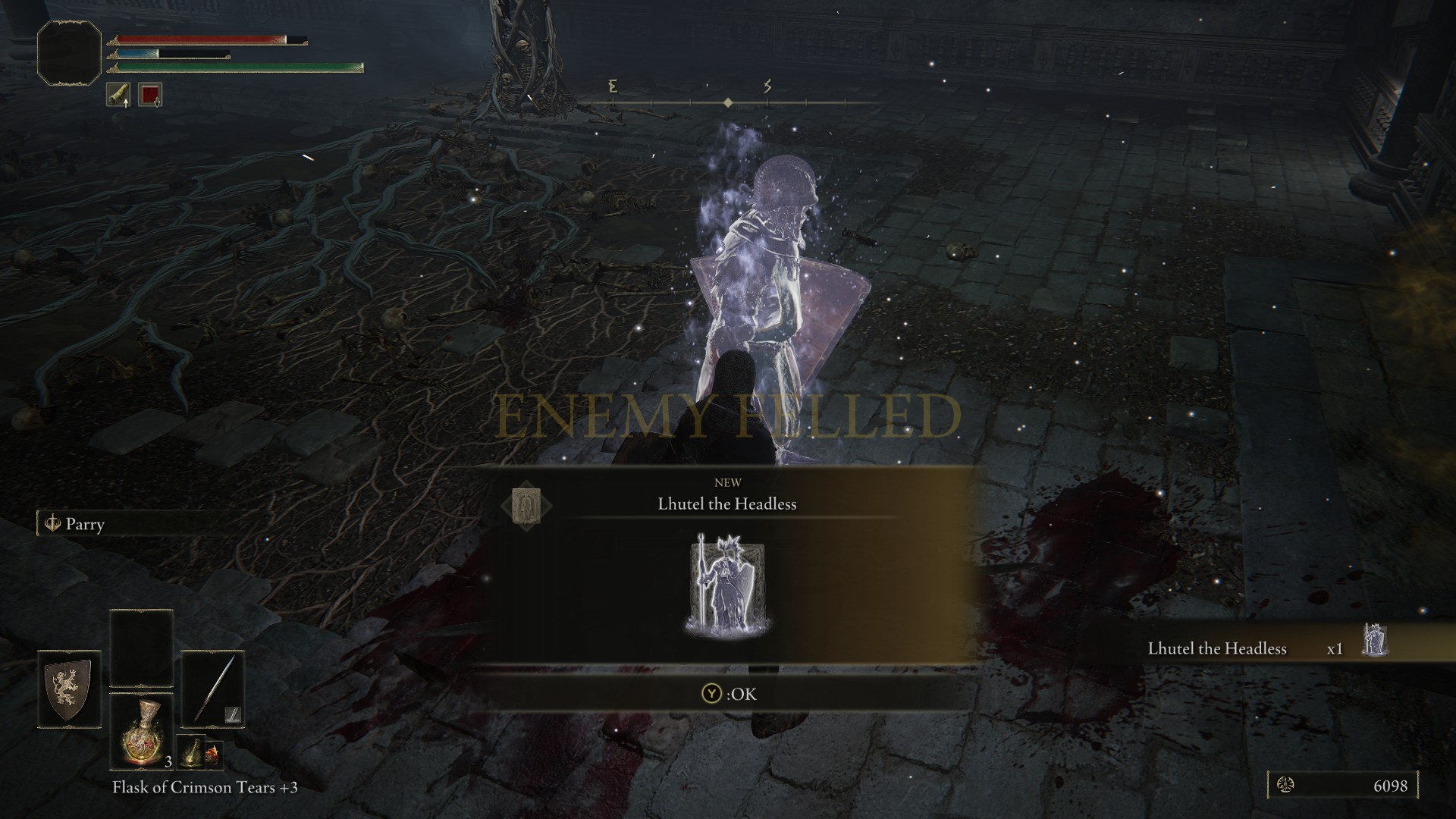 Immer noch - wieder - Elden Ring. Gestern Creepy Hand Manor erledigt und zwei der Belfries aufgeschlossen. Ich verfolge dieses Mal durchaus einen Build, hier kurz davor, dem Ding hinter dem Portal mein neues Schwert zu entreissen.