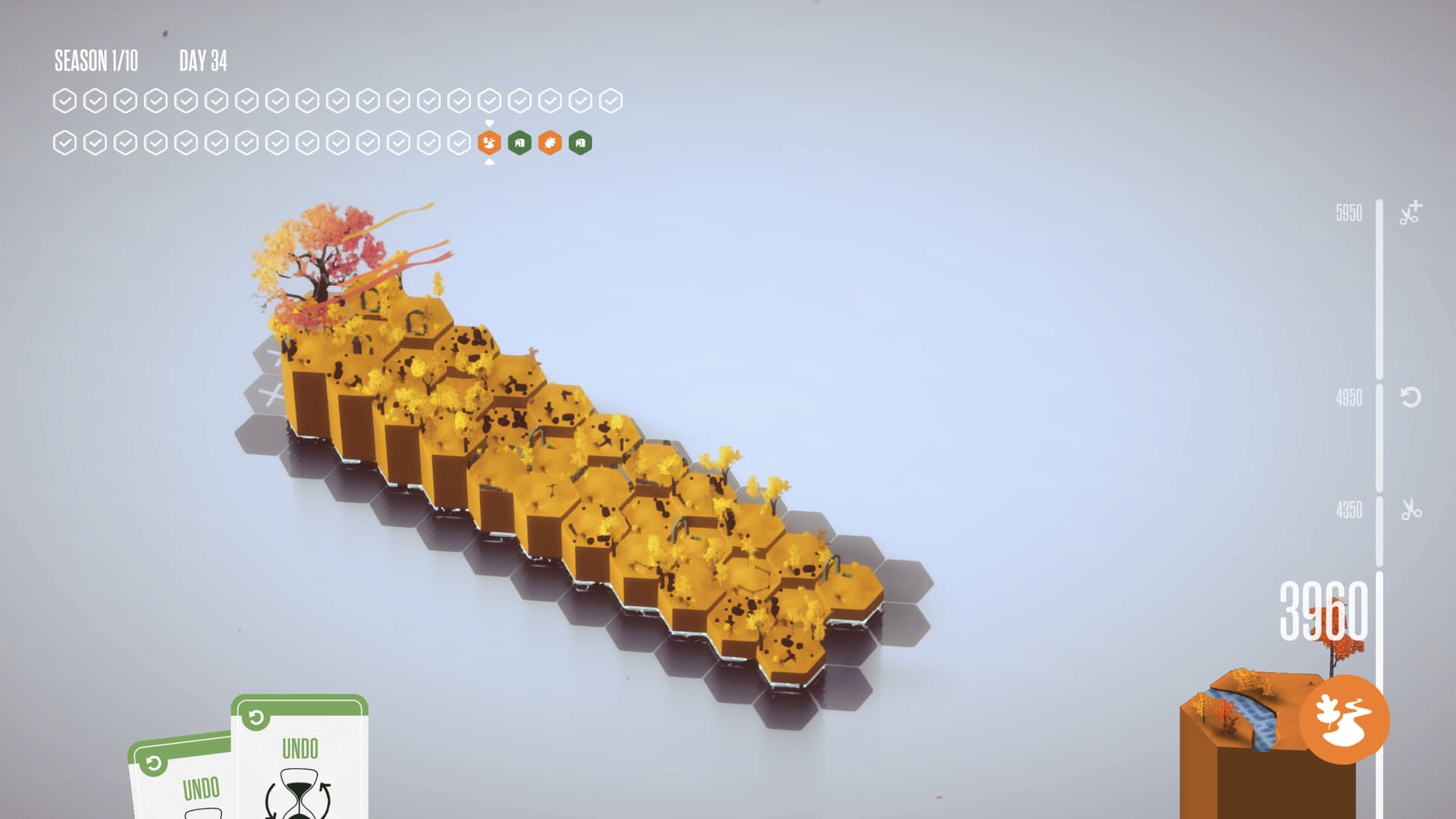 ) schon monoton. Außerdem kann man das Spiel leicht brechen, und zwar indem man in den ersten Seasons extrem „expandiert“. Dann tauchen diese zusätzlichen Inseln, die fett Punkte bringen, gar nicht mehr alle auf und sind dazu noch sehr weit entfernt. Weiter als bei normaler Spielweise üblich.