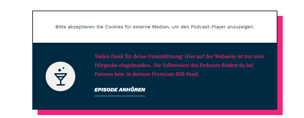 An der Stelle entsteht dann nicht der LInk (den hast du ja bei „Episode anhören“), sondern wieder ein Player mit einem Auszug der Episode, als eine Art Trailer.