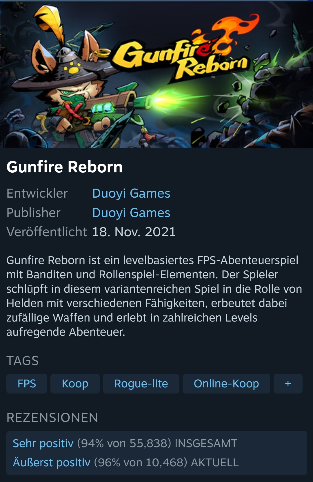 Gunfire Reborn: 55861 Steam-Reviews (94 % positiv)