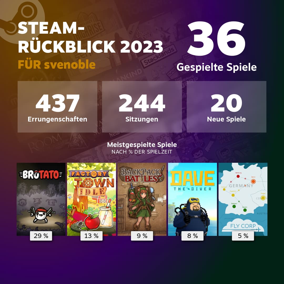 Rein an Stunden ist Zelda TotK mein Game des Jahres…und sooo viel noch nachzuholen. Hoffe 2024 wird ein langweiliges Jahr, muss 2023 und 2022 noch nachholen